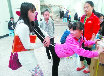 5月17日,在北京市八一中学考场外一名母亲帮女儿练功。当日,根据北京市教委统一安排,具备招收特长生资格的北京市人大附中、北京市八一中学等学校,分别举行体育、艺术、科技特长生的考试。