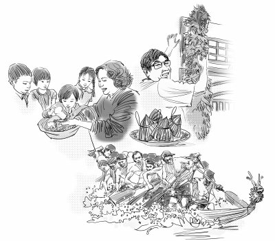 屈原举身赴清流之后,当地百姓闻讯马上划船捞救。为了不让鱼鳖蛟龙伤害屈原尸体,百姓又纷纷在水中投入用树叶包好的饭团。后来,正如我们知道的,划船捞救演变为龙舟竞赛,树叶饭团演变为粽子,一个普通的日子,因为一个人,就此成为一个民族的节日。