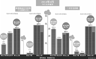 中国指数研究院发布的100个城市新建住宅的全样本调查数据显示,2014年5月,全国100个城市(新建)住宅平均价格为10978元/平方米,环比上月下跌0.32%,是2012年6月以来连续环比上涨23个月后首次环比下跌。同比来看,全国100个城市住宅均价与去年同月相比上涨7.84%,涨幅较上月缩小1.22个百分点,为连续第5个月缩小……