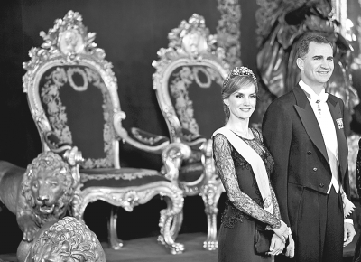 西班牙国王胡安·卡洛斯一世6月2日正式宣布退位。西班牙费利佩王储将于6月19日加冕为费利佩六世,成为新一位西班牙国王。费利佩王储1968年1月30日出生于马德里,是西班牙国王胡安·卡洛斯一世与王后索菲娅第三个也是最小的孩子。他曾就读于加拿大莱克菲尔德大学,1988年10月至1993年6月在马德里独立大学读书,获法律硕士学位,1993年9月至1995年6月在美国乔治敦大学学习,获国际关系硕士学位。2003年11月1日,费利佩王储和西班牙著名电视节目主持人莱蒂西亚订婚。2004年5月22日,两人喜结连理。目前,两人育有两女。在西班牙首都马德里郊外的王宫,费利佩王储与王妃莱蒂西亚站在王座前,准备出席为到访的墨西哥总统涅托举行的欢迎宴会(2014年6月9日摄)。 新华社发