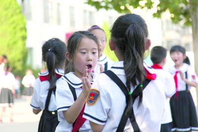 去年以来,滏阳小学着力发挥童谣的教育作用,配合“主题教育月”,组织学生开展形式多样、丰富多彩的童谣诵读活动。在滏阳小学升旗仪式、运动会开闭幕等重大集体活动中,齐声唱童谣都是重要环节,升国旗前朗诵“五星红旗迎风飘,小同学们都站好,我们都来比一比,看谁站得最整齐……”每天第一节课前一分钟,全校31个班级的学生都在老师的指导下集体诵读童谣:“上课首先坐整齐,精力集中来学习;举手回答要有礼,声音洪亮展自己。”即使是学生犯了错,教师也会变批评责罚为启发学生忆童谣、背童谣,激励学生自我反省、积极上进。