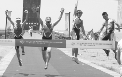游泳1公里、皮划艇6公里、自行车18公里、跑步4公里,6月28日,在江苏宿迁骆马湖,国际生态户外四项体验赛举办,参赛队员通过骆马湖横渡、骆马湖皮划艇、山地自行车、森林公园越野跑四个项目的比试,感受生态户外魅力。