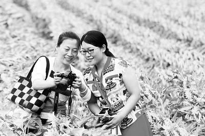 日前,游客在河北省廊坊市固安县林城村千亩油葵中留影。油葵经济价值与观赏性俱佳,成为当地乡村旅游的一道风景线。  本报记者 刘新武摄