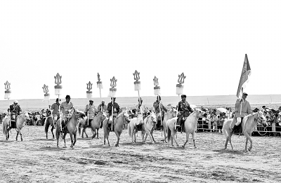 8月10日,“中国·甘其毛都中蒙文化旅游周”启动仪式在内蒙古巴彦淖尔市乌拉特中旗甘其毛都镇德日素嘎查举行。此次为期五天的文化旅游周主要活动有博克、赛马、套马、射箭、马球、排球友谊赛等。 新华社发(支茂盛摄)