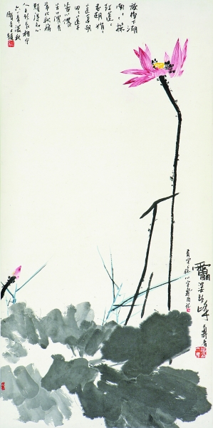 他画梅兰竹石,也画蔬菜瓜果。他画五月芦橘,几颗黄澄澄的橘子鲜艳肥美,水墨淋漓的芦橘叶间,流淌着浑厚有力的神采。他用西洋红画花卉,变水墨为五彩,变重墨为重彩,画面里是活的生命的气韵。