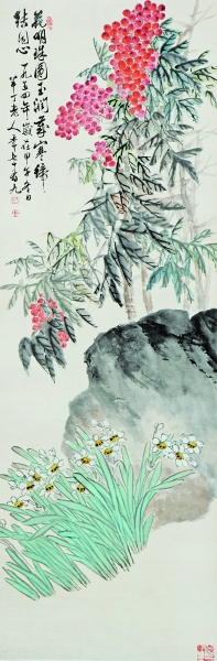 “金石”本指铭文、石刻及以刀刻石所产生的诸如篆刻、碑版等艺术形式,作为一种学问研究始于北宋,作为艺术资源渗入书画则起于明清,尤其是清中后叶,“碑学”大兴,书、印之风俱转向崇尚古拙、质朴、雄健之风,继而强势导入山水与花鸟画中,以在笔墨疏简的写意花鸟画中最能体现。