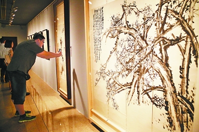 临别美术馆时,只听有人指着一幅牡丹图对身边的同伴说:“这三尺之画真如丈二画幅般有气势!”身边的小女孩兴奋地拉着爸爸的手:“我看到书本上的画了,真好看!”此时,进入大厅赏画的观众络绎不绝。(本报记者 于园媛)