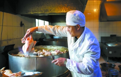 辽北的饮食都是就地取材。辽河汇流后的第一县昌图县水多土肥,物产丰富。这里农作物99%是玉米,还是抗病耐寒、蛋多肉好的“中国豁鹅之乡”,又是花生、土豆、胡萝卜等重要产地。每一次去昌图,都要吃那些物美价廉的铁锅菜,而看着厨师操作更是过瘾:锅烧热了,五六条巴掌长的辽河草鱼,颠倒着摆在锅底,放好佐料,添上汤;而后,用双手把发好、兑好碱的面团拍拍团团的弄成巴掌状,随着“啪啪”的声响,一个个饼子便稳稳地粘在了锅帮上。新出锅的玉米饼粮香扑鼻,鱼肉也格外鲜嫩可口。