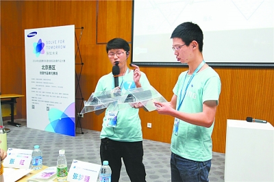 在北京赛区千余支报名队伍中,有近乎一半的作品围绕环境、能源问题展开。“海洋农场建立方案”“冬季无源窗灯”“垃圾回收物联系统”等项目从初赛中脱颖而出,获得现场专家的连连赞叹。