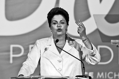 图②巴西总统选举两名候选人进入第二轮。10月5日,在巴西首都巴西利亚,现任总统、劳工党候选人迪尔玛·罗塞夫出席新闻发布会。巴西最高选举法院当地时间5日晚宣布,在当天举行的巴西大选首轮投票中,没有任何总统候选人获得超过半数的选票,现任总统、劳工党候选人迪尔玛·罗塞夫将和社会民主党候选人阿埃西奥·内韦斯进入本月26日举行的第二轮投票。