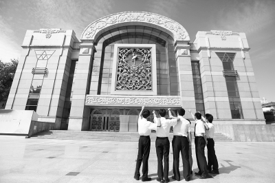 学生指点着新落成的天桥剧场,也指点着自己的职业梦想。