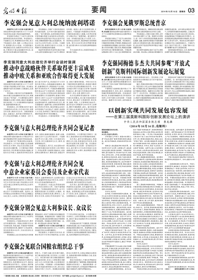 李克强与意大利总理伦齐共同会见记者