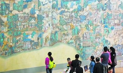 临摹山西永乐宫壁画展近日在湖北省襄阳市体育馆举行,画中临摹人物2000多个,全部作品重达500公斤。新华社发