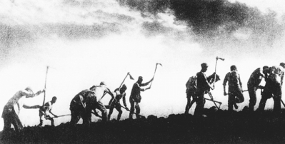 是生产队。从张仲瀚在焉耆街头背起第一副粪篓,到上市公司青松建化;从谢高忠在开都河畔挖出第一块田,到塔克拉玛干的金银粮棉川;从裸体开荒,到中国西部最大的纺织工业基地;从水煮玉米粒充饥,到中国西部最大的食品加工基地;从人拉肩扛,到引领共和国现代化农业;从踏破进军新疆的戈壁长路,到把友谊公路修到巴基斯坦;从地窝子,到联合国改善人类居住环境良好范例奖的军垦新城石河子,天山南北书写下惊天地、泣鬼神的神奇。