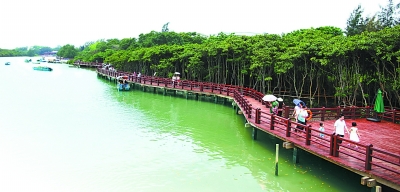 金秋时节,海口市东寨港红树林保护区碧波荡漾,绿树环绕。这片海上森林被誉为“海口之肾”,生长着全国面积最大、种类最齐全、保存最完整的红树林。可是从20世纪70年代开始,由于围海造田和发展种养殖业,这片红树林遭到严重破坏。