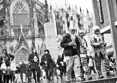 11月11日,在德国科隆,人们参加在科隆大教堂前举行的庆祝活动,庆祝狂欢节启动。科隆狂欢节从每年的11月11日开始,到第二年复活节前40天为止,贯穿整个冬天。 新华社发