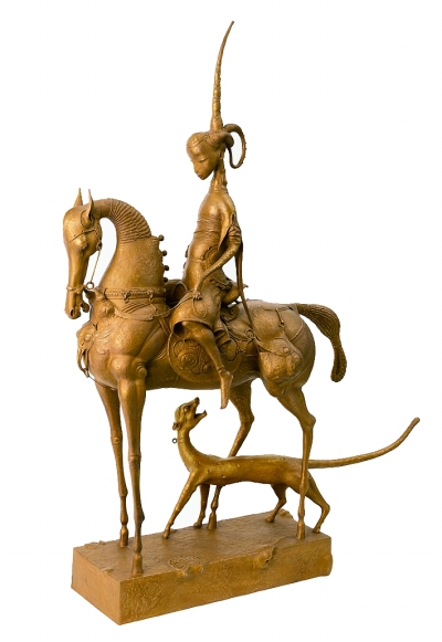 达西·纳姆达科夫是俄罗斯当代艺术家,其作品涉及雕塑、绘画及珠宝设计等多种艺术形式。本次展出的作品共68件,其中雕塑56件,绘画12件,涵括了达西各个时期的重要代表作品。作为俄罗斯布里亚特人的后裔,达西的作品中既有喇嘛教的形象和题材,也融入了布里亚特的英雄史诗、萨满教思想和西伯利亚的神话观念。他用自己的雕塑方法创造了神秘的奇异世界,将民间文化中的装饰和象征元素与学院派的写实手法相结合,两者融合后的新生呈现了东西方文化的相互影响,这正是他艺术创作的独特之处。