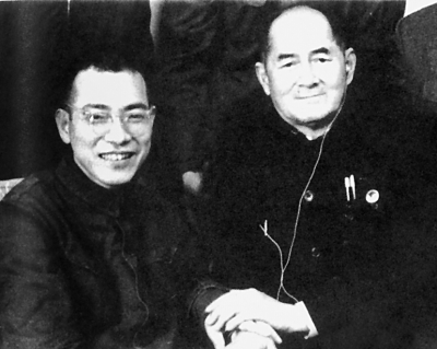徐迟(右)与陈景润的合影。徐迟撰写的报告文学《哥德巴赫猜想》以陈景润为主人公,是当代报告文学创作的一座高峰。