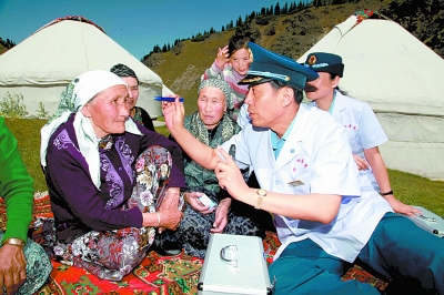 高晓唯并没有在“针尖舞台”上独舞,也从未将自己的“光明术”雪藏。他主动承担和田、喀什、阿克苏等南疆地州、县级医院眼科医生培训任务,十几年下来,已举办培训班15期,培养眼科医生126名。首期参加培训的民丰县医院副院长买买提·艾江说:“眼科医生培训班,已成为解放军与新疆各族群众心连心、共命运的连心桥。”