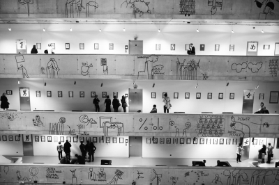 日前在布拉格的捷克国家技术图书馆举办了汉字书法展,图书馆的室内设计、妙趣横生的墙壁漫画和汉字书法相映成趣,给安静的图书馆增添了生气。本报记者 任鹏摄