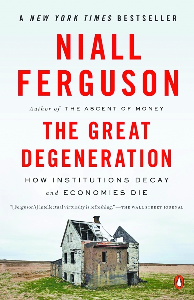 一段时间以来,英国著名历史学家、哈佛大学教授尼尔·弗格森的《大退化:制度如何衰败以及经济如何衰亡》一书在美英等国引起强烈反响,其传递的信息惊醒西方社会。2014年年底,《福布斯》杂志资深编辑罗伯特·伦兹纳则称,《大退化:制度如何衰败以及经济如何衰亡》如今已经成为所有经济学家、股市投资者以及投资银行家的必读书目。