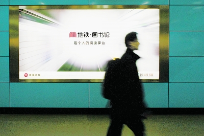 一月十九日,在北京地铁四号线国家图书馆站,一名乘客从“M地铁·图书馆”的广告灯箱前走过。 新华社记者 孙瑞博摄