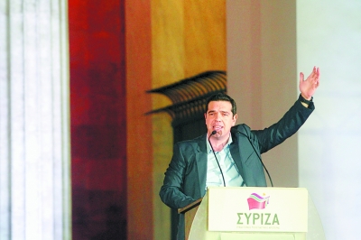 | 1月25日,希腊激进左翼联盟党领导人齐普拉斯在首都雅典举行的庆祝集会上向支持者发表讲话。新华社发 |