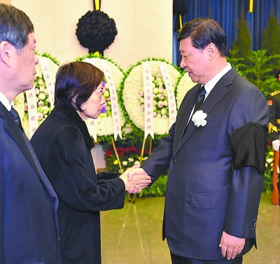 上午9时许,习近平、李克强、张德江、俞正声、刘云山、王岐山、张高丽等,在哀乐声中缓步来到邓力群同志的遗体前肃立默哀,向邓力群同志的遗体三鞠躬,并与亲属一一握手,表示慰问。