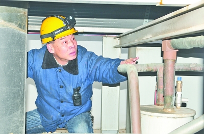 记者跟随刘师傅来到位于地下一层的水泵房。这里虽然漆黑一片,可刘师傅仍能快速地在水泵中间来回穿梭。在重点部位,刘师傅才打开手中的电筒,认真细致地检查。按程序完成好所有的项目检查后,他又及时关闭了手中的电筒。他说这是为了节约用电,不用频繁充电影响工作。