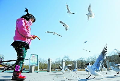 近日,随着宁夏银川市各湖泊、湿地冰面融化,银川市兴庆区燕鸽湖迎来数百只红嘴鸥在湖面飞翔觅食。近年来,银川市持续加大对湿地的保护与恢复,每年春季都有大批候鸟光顾,成为银川市一道美丽风景。新华社记者 王鹏摄