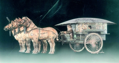 庞大的兵马俑阵容,一定要有一个巨大的作坊或工场,以及无数匠人的投入。已经出土的这几千件兵马俑中,大部分是采用陶冶烧制的方法制成,先用陶模做出初胎,再覆盖一层细泥进行加工刻画加彩,有的先烧后接,有的先接再烧。每一道工序中,都有不同的分工,都有一套严格的工作系统。当时没有美术学院,也没有雕塑院,只有从关中乃至全国各地抽来的匠人,集体意志与个人才能的即兴发挥,现实情境与艺术情境的交融互补,使他们创造出了足以媲美古罗马艺术的东方雕塑群体作品——兵马俑。