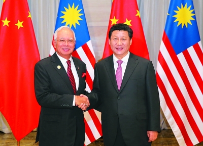 纳吉布表示,中国是马来西亚外交的重要方向,马来西亚特别重视马中关系。当前,两国关系全面有力发展并将继续得以密切和加强。马方感谢中方在国际和双边层面给予的多方面帮助,将同中方一道不断深化两国全面战略伙伴关系。希望两国扩大经贸往来,加强两国省州交流,便利人员互访,继续开展防务执法合作。马方欢迎中国银行在马开办人民币清算行,支持中方提出的亚投行和21世纪海上丝绸之路的倡议。我们将以外交和务实态度处理两国关系中出现的问题。马方愿意在担任东盟轮值主席国期间,促进东盟同中国关系和各领域合作深入发展,推动东盟成员国积极参与21世纪海上丝绸之路建设。