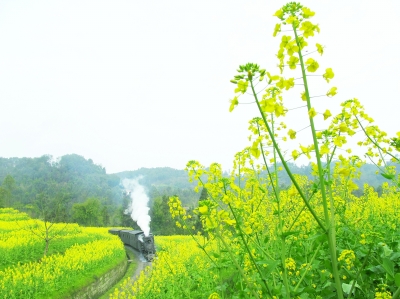 离开市区,我们驱车前往历史悠久的犍为县。随着丘陵的起伏,岷江两岸青翠的山林间,一块块盛开的油菜花田如同一片片金黄的地毯展现在我们眼前,灰瓦白墙的民居点缀其间,像一幅色彩斑斓的油画。