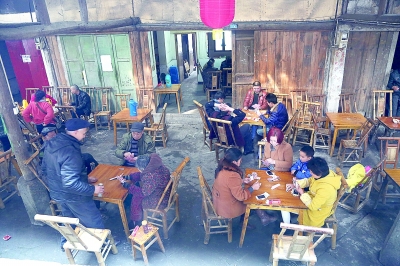“罗城旱码头,客商难久留,要得水成河,罗城修成舟。”犍为罗城古镇始建于明代崇祯年间,当年为求风调雨顺,古镇修建了一条全长209米的船行街,两侧对称分布穿斗木构架式的川南传统民居的狭长街道,两头窄中间宽,像一艘打鱼的大船,又像一个织布的梭子,当地人称“山顶一只船,云中一把梭”。我们来到这里已是午后时分,坐在街边屋檐下那张不知用过多少年、磨掉了边的木桌旁边,喝着当地出产的茉莉花茶,听着四周熙熙攘攘的斗牌声,看着放学的儿童三两成群穿过老街,时间在此刻似乎停止了流动。