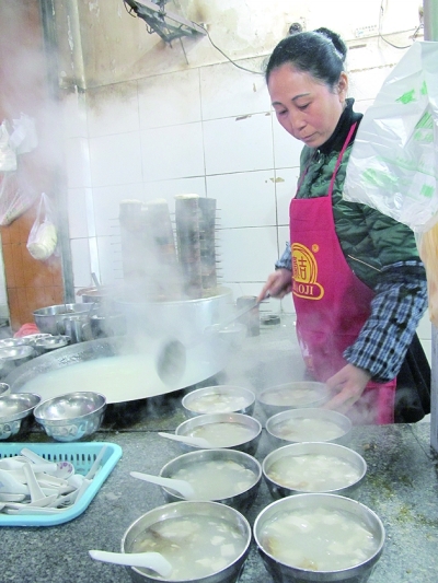 峨眉酥肉豆腐脑是乐山特有的小吃,豆腐脑出锅后盛到碗里浇上高汤,还要放大头菜粒、油酥花生米和酥肉,高汤一定要骨头熬足火候,豆腐必须用石磨,点的时候一定要嫩,酥肉要选上好五花肉,最好肥的多一点,炸的时候要炸干一点,既让肉变得酥脆,又炸出里面的油,口感香酥而不油腻。