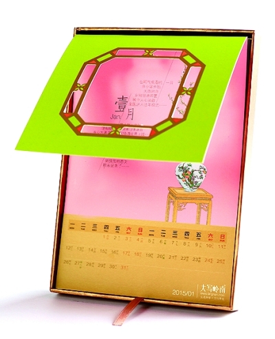 12个月,各有诗意与画意,岭南之美,便被一点一点拆解递送到你的眼里心里。配套的布面笔记本,亦布有伏笔,20页呈现岭南之美的彩页布列于前面,以期作为引子,填写你所知所见的岭南,最后,滴水成川流成汪洋,你写他写,写成一本浩瀚的岭南之美。