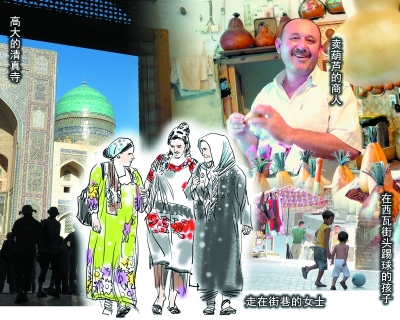乌兹别克斯坦第二大城市撒马尔罕是丝绸之路上重要的枢纽城市。2014年8月,带着对撒马尔罕的美好想象,记者来到这个中亚最古老的城市之一。在这个戈壁荒漠包围的城市中,清真寺高大壮观,现代建筑鳞次栉比,街面上车水马龙。在丝绸之路上,乌兹别克斯坦是中亚地理的中心、文明的心脏。而撒马尔罕连接着伊朗、印度和中国,成为欧亚大陆间的通衢要地,来自中国的丝绸、印度的棉布、西亚的毛织品以及西方的玻璃器在这里汇聚,让这座城市充满了奇异的美。(本报记者 周龙、郭红松)