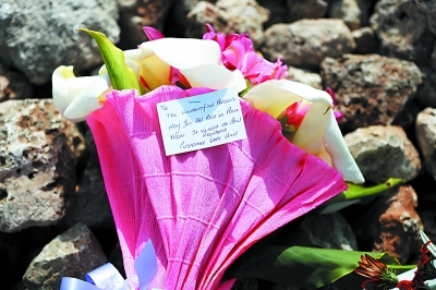 图为4月23日,在马耳他姆西达,当地民众向地中海沉船罹难者献花以致哀。新华社记者 李佳摄