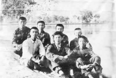1975年高中毕业与同学合影,前排中为何自力。