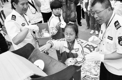 4月20日,昆明小学生与工作人员一起在昆明活动现场销毁盗版光盘。当日,云南省在昆明及15个州市集中销毁各类侵权盗版制品和非法出版物30余万件,并同时开展保护知识产权的宣传教育系列活动,迎接“4·26”世界知识产权日。新华社记者 陈海宁摄