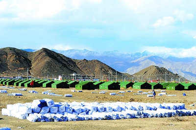 4月30日,经过解放军、武警官兵、当地干部及工程人员两个昼夜的奋战,位于西藏日喀则市工业园区的受灾群众安置点基本建成,这个安置点也是此次西藏地震最大规模的安置点,已搭建帐篷3500顶,可供1万余名受灾群众居住。
