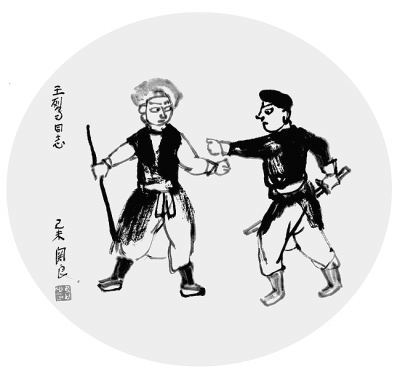 如果你是演员,舞台是一扇窗户,可以由此而向外观望;如果你是观众,舞台是四维空间,它是你观望历史和现实的途径。《两狼山》是杨家戏,由杨家衍生出来的戏很多。杨家的男子、女子,就连风烛残年的佘太君最后都要向她的国家交还一把骨头,有大国子民的气魄。杨家戏在舞台上用得最多的是马鞭,马上马下,奔波于疆场要依靠他们的坐骑——强悍的马匹。马是龙的近亲,良马可以使萎靡的军队振作起来。我的一位本家爷爷喜欢唱戏,也算民间把式,唱《两狼山》里的杨继业,唱到《苏武庙》碰碑那场戏,台上台下遍地哭声。盖世英豪,撩起征袍遮面,一头向李陵碑碰去!叹坏苏武,愧煞李陵。苍天啊,泪雨漾漾,洒向人间都是怨!我的本家奶奶,性子滚烫,地里做工不输男人,没有人敢把她看作是个女子。家里也是一把好手,做黄豆酱、腌萝卜芥菜,捎带做醋,日常生活拿得起,还要赶会,看丈夫唱戏。有一年看丈夫唱《两狼山》,在台下看到丈夫碰碑而死,她托小腰,一步三晃,走上舞台递一罐头瓶胖大海泡开的水给丈夫,台下笑场。
