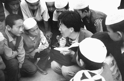 本版内容由本报记者曾毅整理,图片为东北师范大学农村教育研究所调研人员深入边远贫困地区与农村中小学生交流。