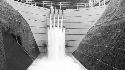 世界上最高的混凝土双曲拱坝——锦屏一级水电站,针对当地水头高、流量大、泄洪功率大、地质条件复杂现状,南科院开展了枢纽布置、坝身泄洪消能、泄洪雾化、泄洪洞水动力学等研究,提出了雾化量小、结构安全的无碰撞泄洪消能模式,有力支持了工程设计、施工和运行。