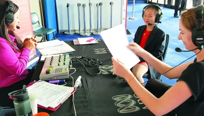 年仅8岁的中国江苏如皋小学生邹帼日前受邀参加了在澳大利亚新南威尔士州布罗肯市召开的“2015年澳大利亚能源与资源投资发展研讨大会”,并做了开场演讲,呼吁与会者为发展中澳关系多作贡献。她流畅的英语和生动的表达能力博得大家阵阵掌声。图为邹帼在会议现场接受当地媒体采访。云儿摄