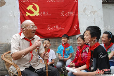 六月二十六日,山东省青州市邵庄小学的小学生在倾听年逾九旬的老党员蔡昭华讲说解放战争的革命故事。“七一”前夕,“全国双拥模范城市”青州市积极倡导辖区各大中小学通过走访当地老党员等活动,重温党史历程,感怀当前幸福美好生活。