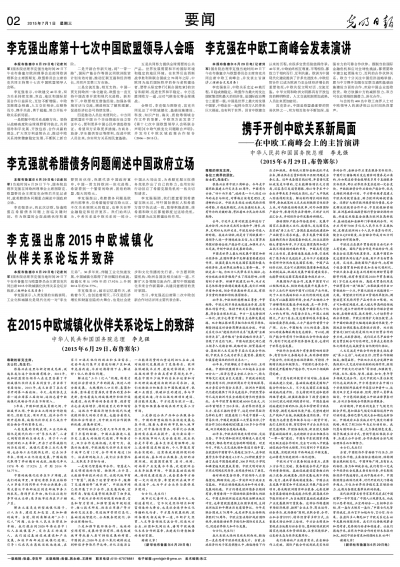 李克强出席2015中欧城镇化伙伴关系论坛并致辞