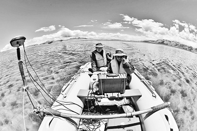 测量人员在进行GPS定位测量水下地形作业。7月上旬,位于藏北尼玛县的我国西部重要湖泊——当惹雍错外业测量完成,结束了该湖无基础资料的历史,填补了我国国情资料的又一历史资料空白。新华社发