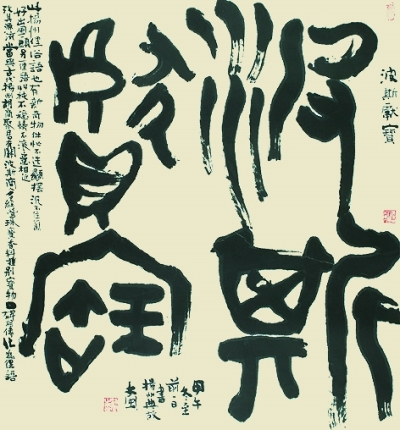 除了在作品的形式、章法上做些探索,顾风也尝试着用不同的书体进行创作,尽可能规避作品出现同质化的缺陷。不少作品除了要表现主要内容,还附有数量不等的题跋文字,诸如作者、作品的评介,历史事件及其背景介绍,出土材料的基本信息,以及个人对一些学术问题的研究心得和专业思考。这些信息增加了展览的学术含量,丰富了作品的章法布白,呈现出艺术性和学术性并重的特点。