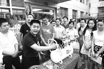 8月7日,一名指导老师在创客沙龙上向创客们讲解空压机的使用。当日,安徽合肥市常青街道“创客·梦空间”社会创业园举办创客意见征集主题沙龙,邀请来自安徽省各地的100多名创客在创业经历、创业思维等方面开展互动交流,为创客们提供思想碰撞、沟通交流的平台。新华社记者 刘军喜摄